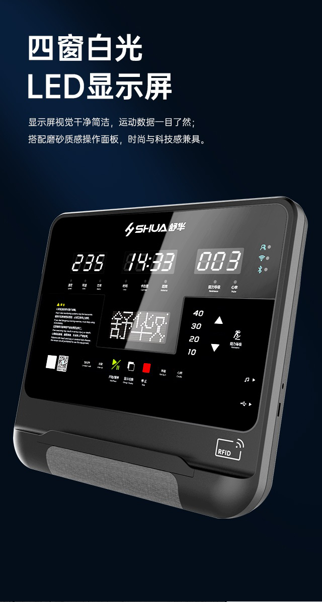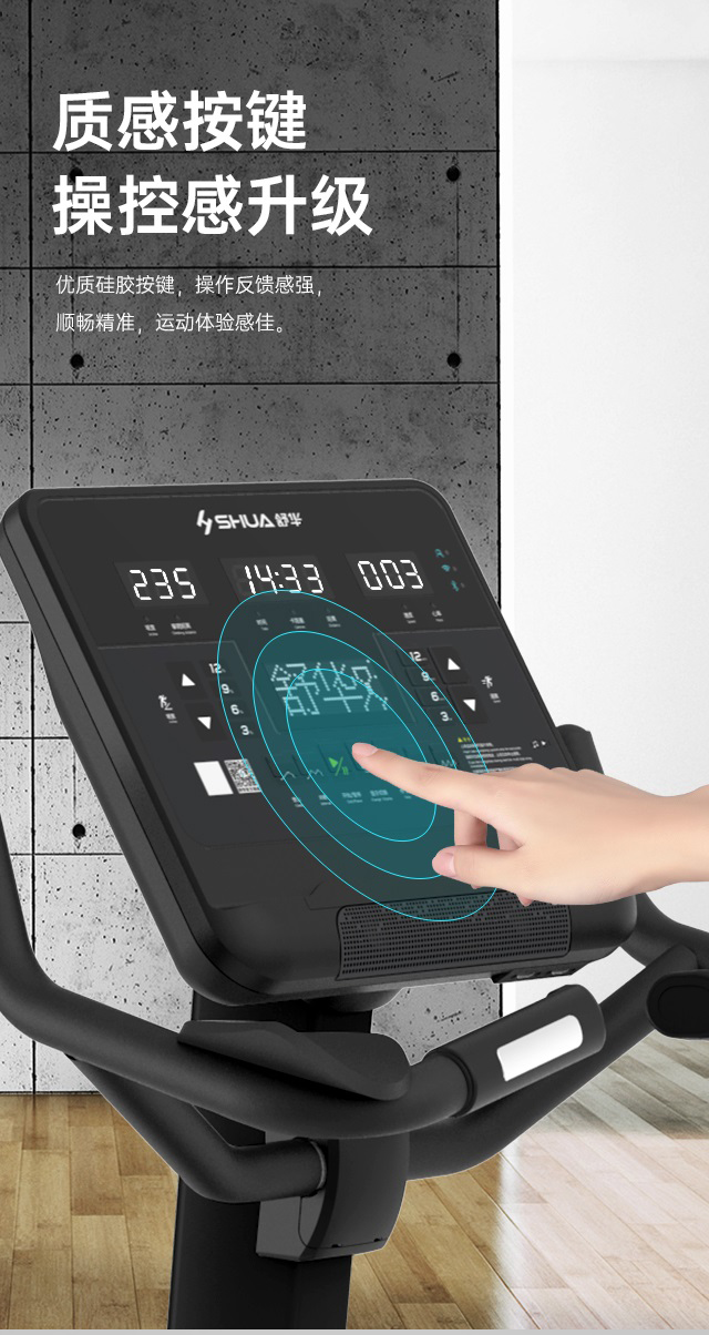 舒華立式商用健身車SH-B9100U(V10)觸屏版擁有超大顯示和操作屏幕, 可以任意設(shè)置阻力、時間和距離等參數(shù),還可以即時顯示心跳和轉(zhuǎn)速等數(shù)據(jù),同時,SH-B9100U提供多項科學(xué)運動處方,更輕松掌握運動節(jié)奏。