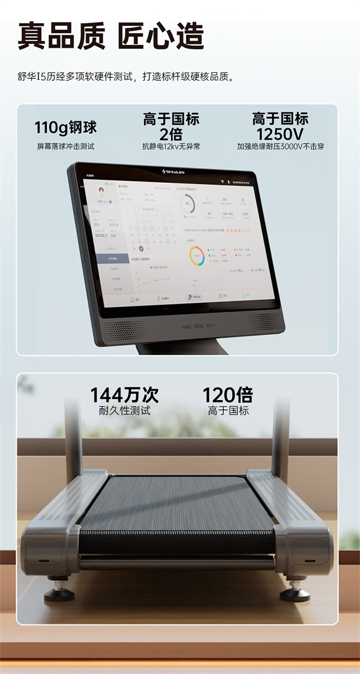 • 產(chǎn)品簡(jiǎn)介:舒華I5智能家用跑步機(jī)是由舒華體育聯(lián)合中國體育科學(xué)學(xué)會(huì)、上海體育大學(xué)運(yùn)動(dòng)科學(xué)學(xué)院教授陸大江等權(quán)威機(jī)構(gòu)、專家共同研發(fā)設(shè)計(jì)。獨(dú)特之處在于它結(jié)合國際科學(xué)跑步研究理論,能夠針對(duì)不同用戶進(jìn)行運(yùn)動(dòng)能力測(cè)試,并根據(jù)測(cè)試結(jié)果生成因人而異的有氧運(yùn)動(dòng)處方。這意味著每個(gè)用戶都能得到一個(gè)適合自己的運(yùn)動(dòng)方案,從而更好地達(dá)到運(yùn)動(dòng)效果。這一創(chuàng)新技術(shù)可以確保用戶在運(yùn)動(dòng)過程中能夠保持在最佳的區(qū)間狀態(tài),從而提高運(yùn)動(dòng)安全性和有效性。